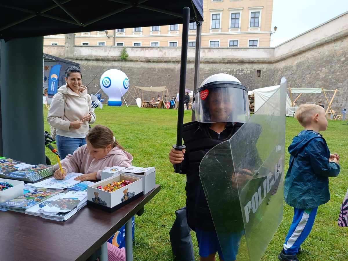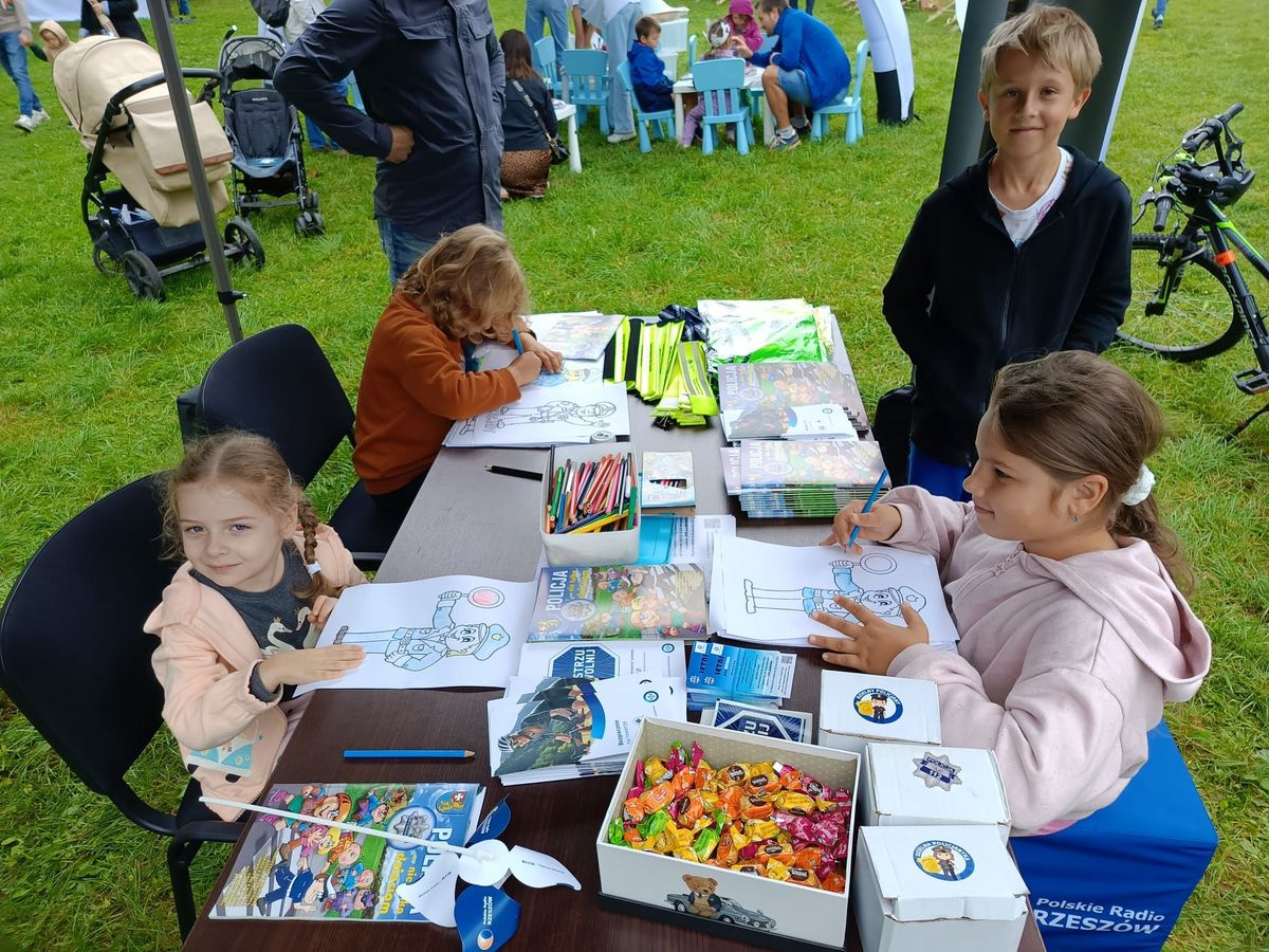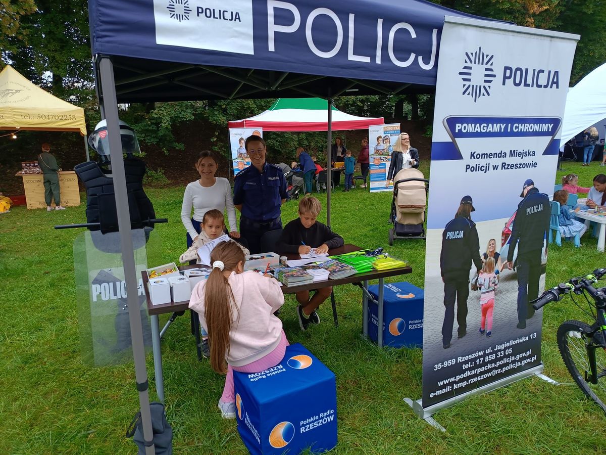 Dla najmłodszych policjanci z Referatu ds. Profilaktyki Społecznej Nieletnich i Patologii Wydziału Prewencji Komendy Miejskiej Policji w Rzeszowie przygotowali stoisko profilaktyczne. Dzieci chętnie kolorowały obrazki, częstowały się słodyczami i zadawały mnóstwo pytań. Profilaktycy propagowali i zachęcali do używania odblasków, które można było sobie wybrać. Do wyboru były elastyczne opaski na przedramię lub tradycyjne. Funkcjonariusze rozdawali także książeczki edukacyjne, z których najmłodsi mogą dowiedzieć się np. jak bezpiecznie przechodzić przez jezdnie, lub jaki numer telefon należy wybrać, aby wezwać pomoc.