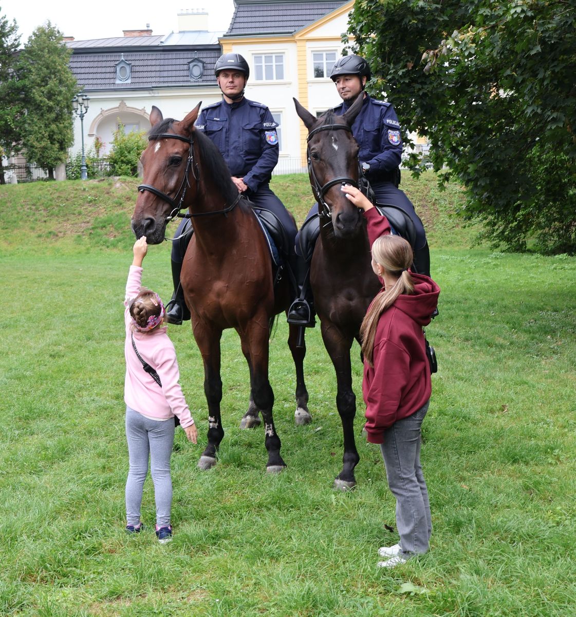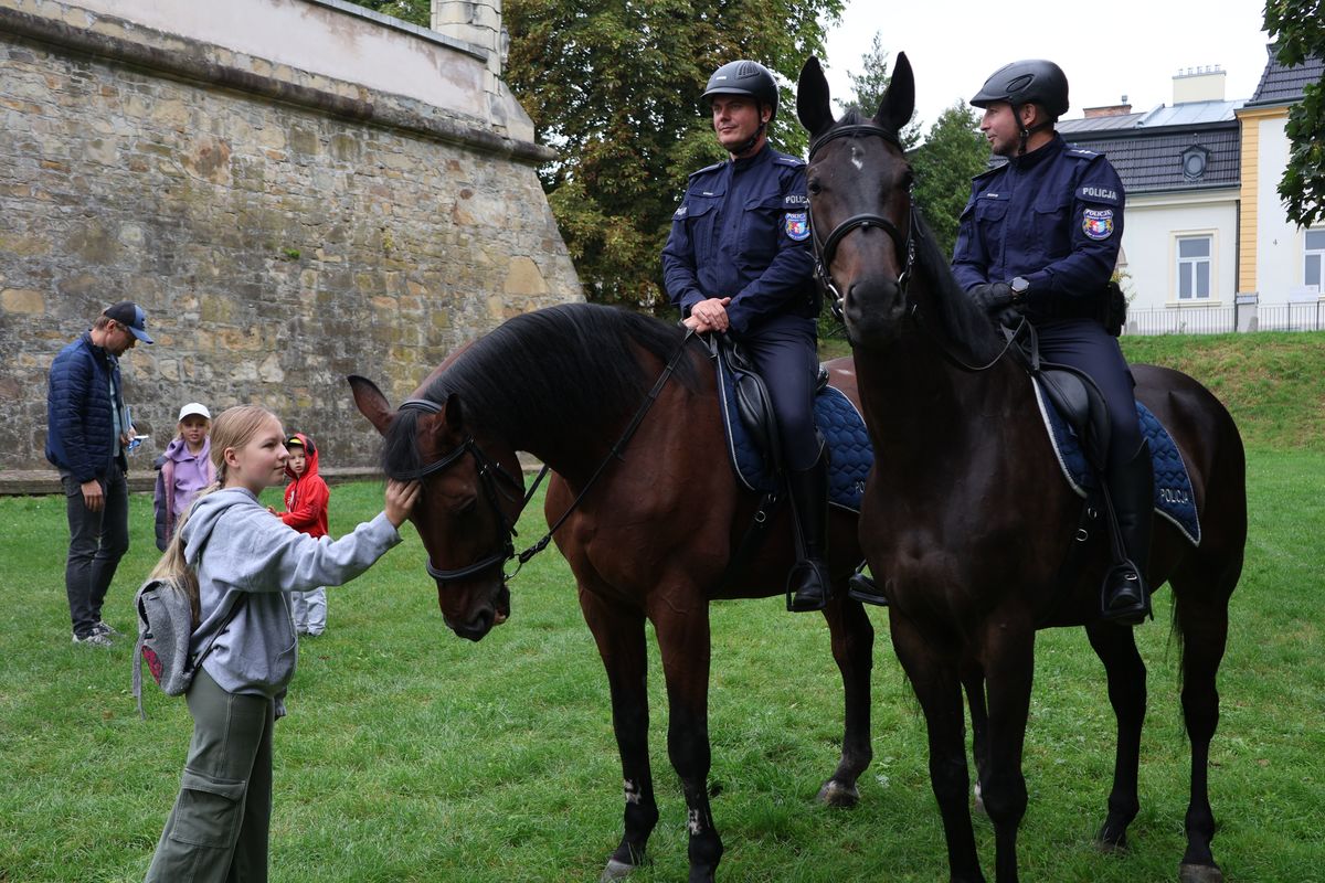 Dużą atrakcą były dwa policyjne konie, na których przyjechali funkcjonariusze z Komendy Wojewódzkiej Policji w Rzeszowie. Te majestatyczne zwierzęta chętnie dawały się głaskać i cierpliwie pozowały do zdjęć. Ich opiekunowie opowiadali o tym jak wygląda służba na koniu i jak należy opiekować się takim zwierzęciem.
