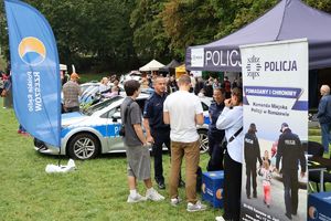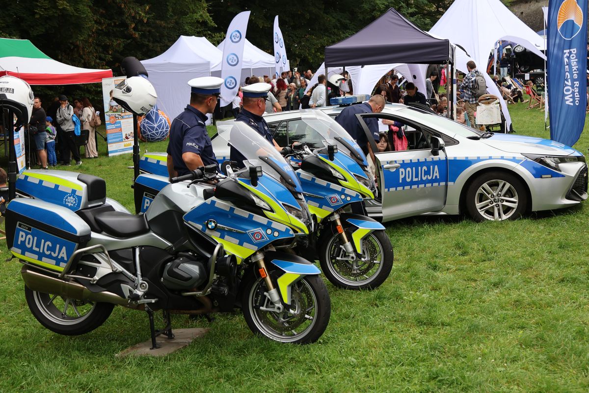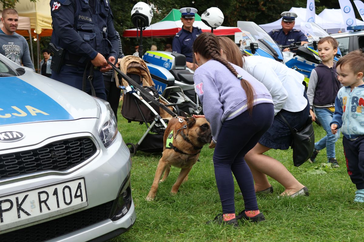 Mundurowi zaprezentowali również radiowóz oraz dwa motocykle służbowe. Goście pikniku chętnie korzystali z tej atrakcji, robiąc sobie pamiątkowe zdjęcia. Jak zwykle, dużo radości u dzieci wzbudziła możliwość włączenia sygnałów czy pozdrowienia najbliższych przez głośnik.