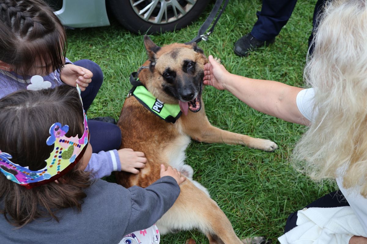 Alfa, pies patrolowo-tropiący oraz Lobo, pies wyszkolony do wykrywania materiałów pirotechnicznych, na buzi niejednego dziecka wywołały zachwyt i radość. Zwłaszcza Lobo, do którego dzieciaki chętnie przytulały się.