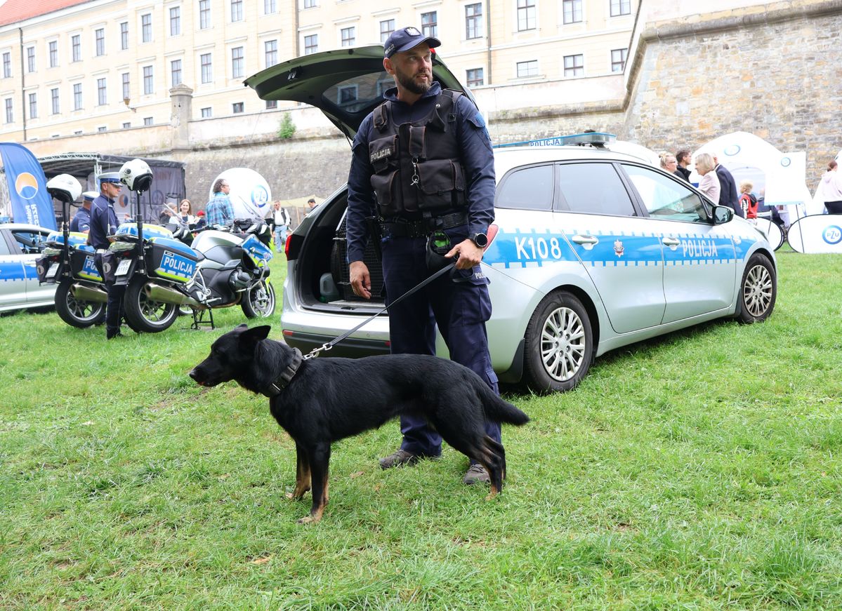 Na piknik przyszli policyjni przewodnicy psów ze swoimi czworonożnymi partnerami.