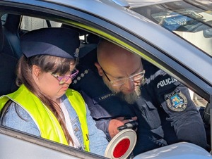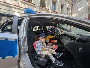 Opowiadał także o zawodzie policjanta, prezentując przy tym elementy policyjnego wyposażenia do służby. Jak zawsze, najwięcej emocji wzbudziły kajdanki i radiowóz. Niemal każdy z uczestników chciał wsiąść za jego kierownicę i poczuć się jak prawdziwy stróż prawa.