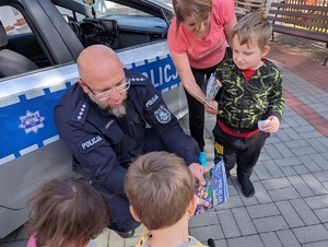Uczestnikom profilaktyk rozdawał naklejki „dzielny policjant”, „dzielna policjantka”, odblaski oraz książeczki edukacyjne poświęcone bezpieczeństwu. Na zakończenie każdy mógł zrobić sobie pamiątkowe zdjęcie.