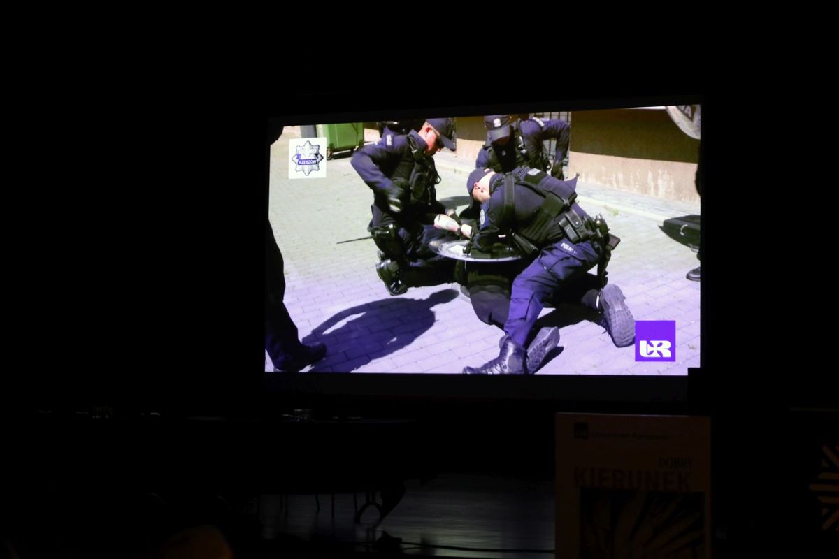 Po projekcji filmu jako ekspert, głos zabrał Zastępca Dowódcy Samodzielnego Oddziału Kontrterrorystycznego Policji w Rzeszowie kom. Grzegorz Skrzęta. Omówił kim jest aktywny strzelec i jak należy zachować się w sytuacji ataku takiego napastnika. Funkcjonariusz przedstawił gościom i uczestnikom wydarzenia, pobudki postępowania agresora. Na autentycznych zdarzeniach, do jakich w ostatnich latach doszło na terenie województwa podkarpackiego, zobrazował zachowanie aktywnego strzelca. W trakcie swojego wystąpienia zaznaczał, jak ważne jest stosowanie się w sytuacji kryzysowej, do zasady 4U.