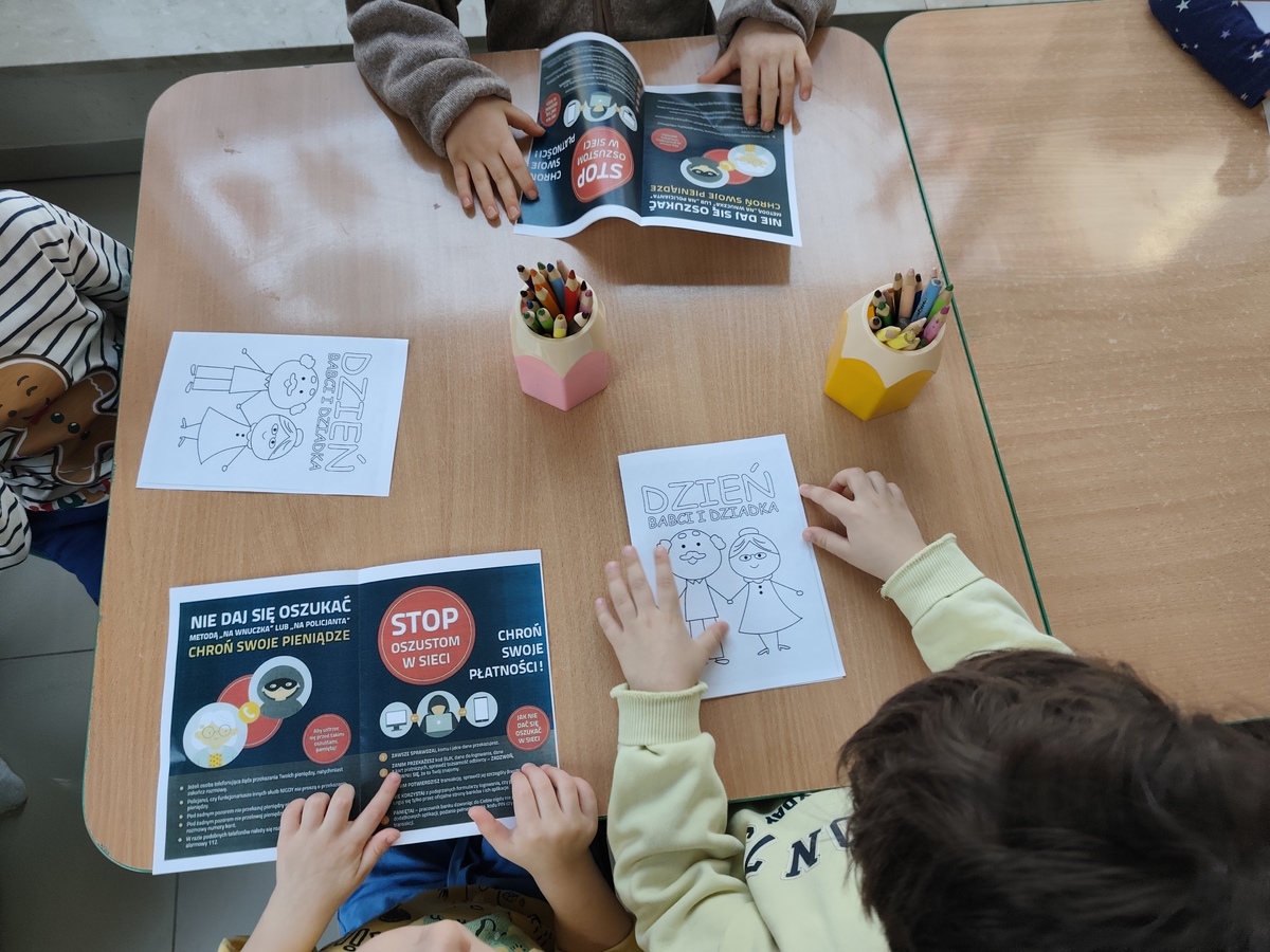 Policjantki Zespołu ds. Profilaktyki Społecznej Nieletnich i Patologii Wydziału Prewencji Komendy Miejskiej Policji w Rzeszowie odwiedziły „Bajkowe Przedszkole” przy ul. Lenartowicza w Rzeszowie. Przygotowały i wydrukowały specjalne kartki, aby dzieci mogły je pokolorować. Otwierając kartkę seniorzy znajdą profilaktyczne przestrogi, które przypomną o tym, jak nie dać się oszukać. Wszystko po to, by ten wyjątkowy dzień i kazdy następny, był bezpieczny.