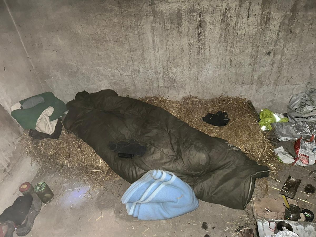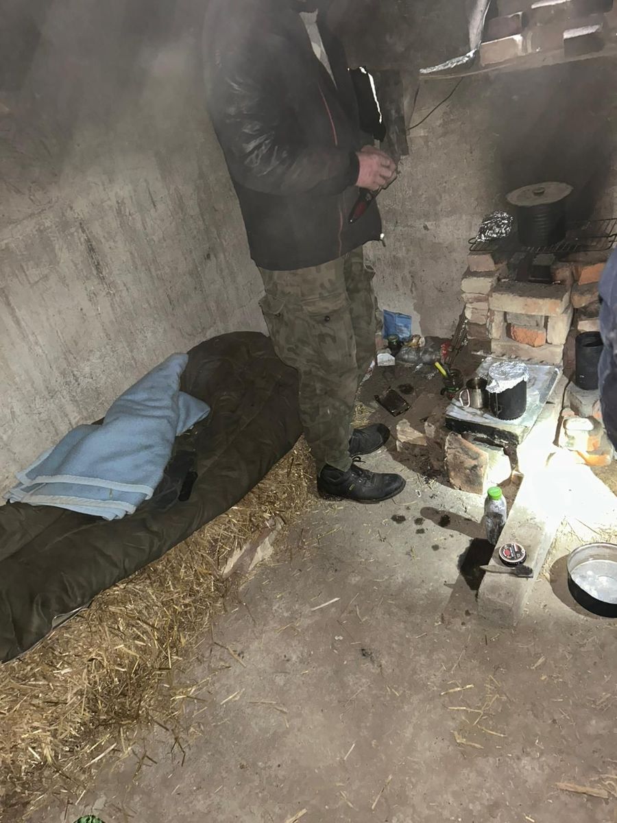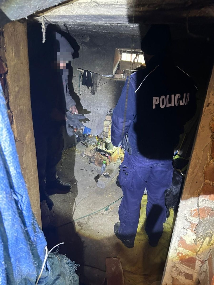 Zastali tam mężczyznę, który oświadczył, że od jakiegoś czasu zamieszkuje tu wraz ze swoim psem. Pomieszczenie ogrzewał własnoręcznie wykonanym piecykiem z cegieł. Dzięki temu w pomieszczeniu panowała dodatnia temperatura. Mimo tego, warunki bytowe w jakich przebywał 41-latek były bardzo złe.