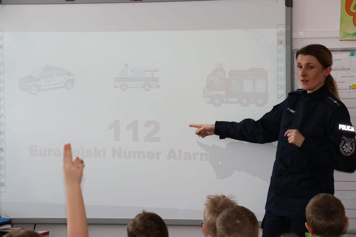 W trakcie spotkania mł. asp. Anna Kurek kategorycznie przestrzegała przed zabawami w rejonie zamarzniętych zbiorników wodnych i wchodzenia na lód. Policjantka opowiedziała, jak bezpiecznie należy zorganizować kulig czy bitwę na śnieżki, tak, aby nikomu nie stało się nic złego. Tłumaczyła, jak zachować się w przypadku kontaktu z obcą osobą, jak reagować oraz gdzie szukać pomocy. Przypomniała wszystkim o ważnych telefonach alarmowych, które wykorzystywane są w sytuacjach zagrożenia.