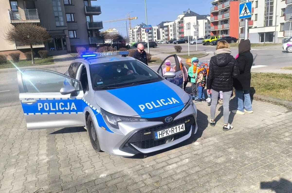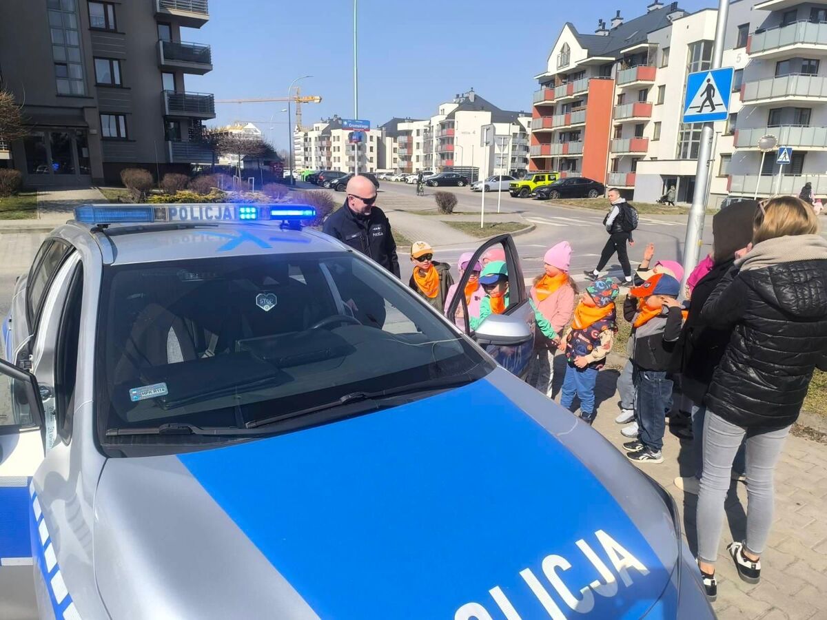 Przedszkolaki z dużym zainteresowaniem słuchały i dzieliły się z dzielnicowym swoimi doświadczeniami. Miały także okazję zobaczyć policyjny radiowóz, oznakowany sygnałami świetlnymi i dźwiękowymi, który zrobił na nich ogromne wrażenie.